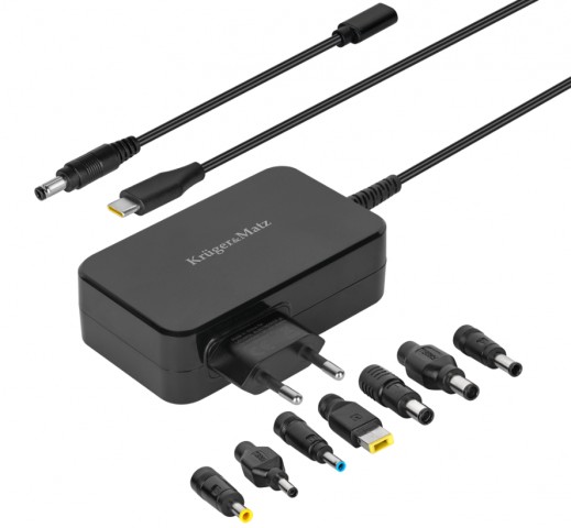 Uniwersalny zasilacz do laptopa Kruger&Matz to idealne rozwiązanie w domu, biurze i podróży. Sprawdzi się, gdy Twój oryginalny zasilacz ulegnie awarii, zgubi się lub potrzebujesz jednego urządzenia do kilku laptopów. Dzięki wymiennym końcówkom i złączom USB-C możesz ładować wiele modeli komputerów oraz inne urządzenia mobilne – wygodnie i bezpiecznie.
